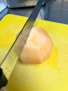 Melone Schale abschneiden